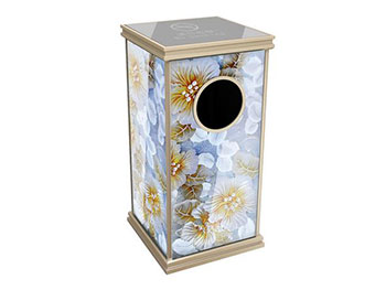 鋼化玻璃垃圾桶選用經(jīng)過(guò)防爆處理后的鋼化玻璃面板,搭配嚴(yán)絲合縫的鋁合金框架,二者組合而成的新型垃圾桶,常規(guī)大小為350*350*700mm,外表高端大氣,可根據(jù)需求定制各種個(gè)性化圖紋及LOGO,滿足多變的華麗風(fēng)格,并且耐腐、耐磨、歷久彌新。