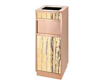 欣方圳鈦金垃圾桶由鍍金鋼板或不銹鋼和大理石制作而成,表面經(jīng)除油、清洗、酸洗、清洗、表調(diào)、磷化、清洗、烘干、靜電粉末噴涂、高溫塑化、冷卻等工藝處理。極耐磨損、耐酸、耐堿,耐腐蝕性,永遠(yuǎn)不會(huì)生銹。產(chǎn)品表面呈金黃色,光滑亮麗,彰顯高貴本色,適用于各種高檔室內(nèi)場合。
