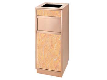 欣方圳鈦金垃圾桶由鍍金鋼板或不銹鋼和大理石制作而成,表面經(jīng)除油、清洗、酸洗、清洗、表調、磷化、清洗、烘干、靜電粉末噴涂、高溫塑化、冷卻等工藝處理。極耐磨損、耐酸、耐堿,耐腐蝕性,永遠不會生銹。產(chǎn)品表面呈金黃色,光滑亮麗,彰顯高貴本色,適用于各種高檔室內場合。