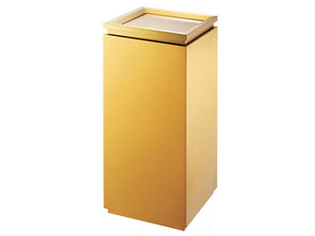 欣方圳鈦金垃圾桶由鍍金鋼板或不銹鋼和大理石制作而成,表面經(jīng)除油、清洗、酸洗、清洗、表調(diào)、磷化、清洗、烘干、靜電粉末噴涂、高溫塑化、冷卻等工藝處理。極耐磨損、耐酸、耐堿,耐腐蝕性,永遠(yuǎn)不會(huì)生銹。產(chǎn)品表面呈金黃色,光滑亮麗,彰顯高貴本色,適用于各種高檔室內(nèi)場合。