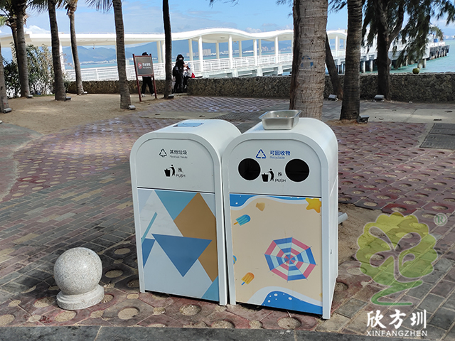 海南海邊公園烤漆組合式不銹鋼分類(lèi)垃圾桶案例