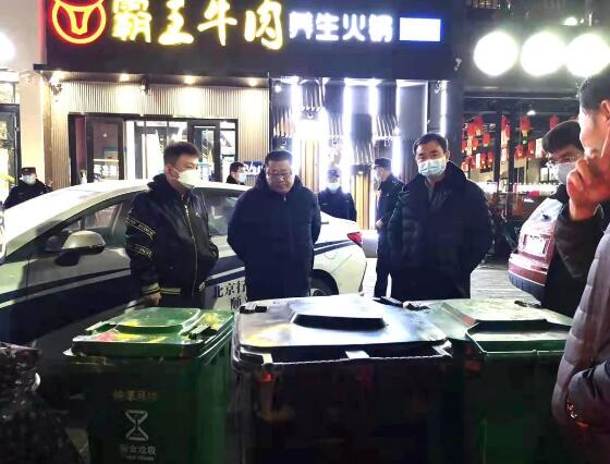 區(qū)城市管理委黨組書(shū)記、主任馬衛(wèi)國(guó)帶隊(duì)在金漢餐飲街檢查垃圾桶整治工作。