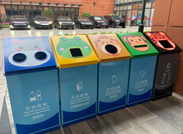 在綠意盎然的幼兒園戶外活動(dòng)區(qū),一群稚氣未脫的孩子正圍著一組色彩斑斕的金屬垃圾箱熱烈討論。"香蕉皮應(yīng)該放在綠色箱子里!""牛奶盒要洗干凈放進(jìn)藍(lán)色箱子!"這樣的場(chǎng)景,正在越來(lái)越多的幼兒園上演。金屬分類垃圾箱已突破傳統(tǒng)環(huán)衛(wèi)設(shè)施的單一功能,演變?yōu)槌休d環(huán)保教育使命的立體教具。