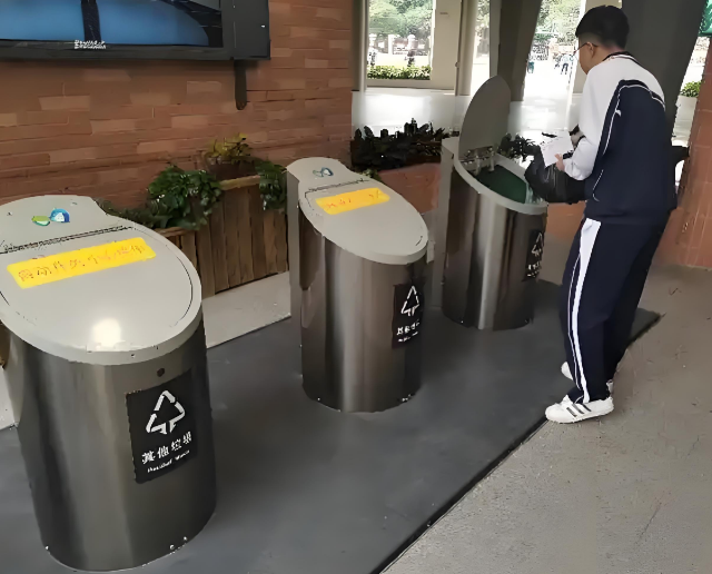 2. 安全型定制:在校園等特殊場所,增設(shè)非接觸式電磁鎖裝置,需管理員授權(quán)才能開啟;旅游景區(qū)采用"防拋物設(shè)計(jì)",通過15°傾斜角內(nèi)壁和限位擋板防止垃圾外溢。