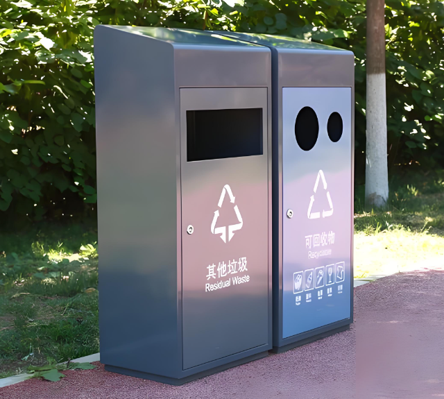 這款垃圾桶的外觀設(shè)計(jì)十分獨(dú)特,不同于傳統(tǒng)垃圾桶單調(diào)的模樣。它采用了時(shí)尚的配色,經(jīng)典的藍(lán)綠兩色用于區(qū)分可回收物和其他垃圾,色彩鮮艷且醒目,讓人一眼就能識(shí)別。而且,噴粉工藝讓垃圾桶表面呈現(xiàn)出細(xì)膩的質(zhì)感,不僅耐磨,還能抵御紫外線的侵蝕,即使長(zhǎng)時(shí)間在戶外風(fēng)吹日曬,也不易褪色。其流暢的線條設(shè)計(jì),搭配上簡(jiǎn)約的造型,無論是放在公園的小徑旁,還是小區(qū)的綠化帶邊,都毫無違和感,反而能為周圍環(huán)境增添一份現(xiàn)代時(shí)尚的氣息,成為戶外空間里一道別樣的風(fēng)景線。
